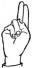 На ћирилици написано ЛАБУДА ТОРБИЦА састоји се из 13 слова [?]. Исписано ћириличном једноручном азбуком за глувонеме:
